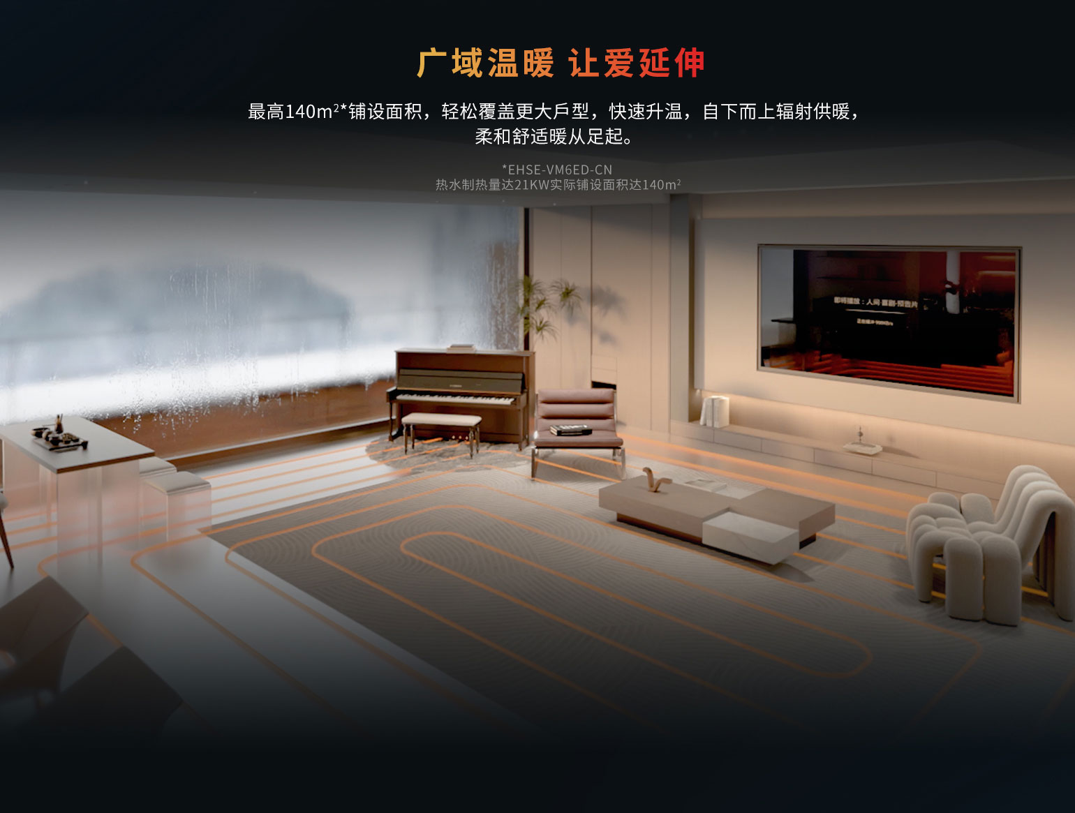 探索三菱电机菱耀系列地板采暖解决方案,专为家庭舒适度与节能效率设计。适用于80至160平方米住宅的辐射地板采暖系统,搭载源自英国的先进空气源热泵技术。高效供应20至55°C范围内的热水,无缝整合您的中央空调,实现冷暖双供。尽享极致静谧、超凡舒适体验,全电力运行确保更高安全性,并配备多种水温控制模式,个性化调整家中温暖。